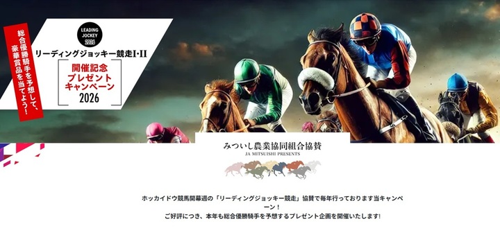 「リーディングジョッキーⅠ・Ⅱ」開催記念プレゼントについて 4月16日(木)に実施予定の、みついし農業協同組合協賛「リーディングジョッキーⅠ」およびみついし「リーディングジョッキ