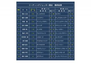 なお、リーディングジョッキー競走の結果については以下のとおりとなりました。