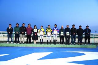 トータル35点を獲得した落合玄太騎手が見事 総合優勝となり、2位は27点を獲得した藤田凌駕騎手、3位は24点を獲得した阿部龍騎手でした。3名には、副賞としてみついし和牛と三石産グリーンアスパラが贈呈されました。